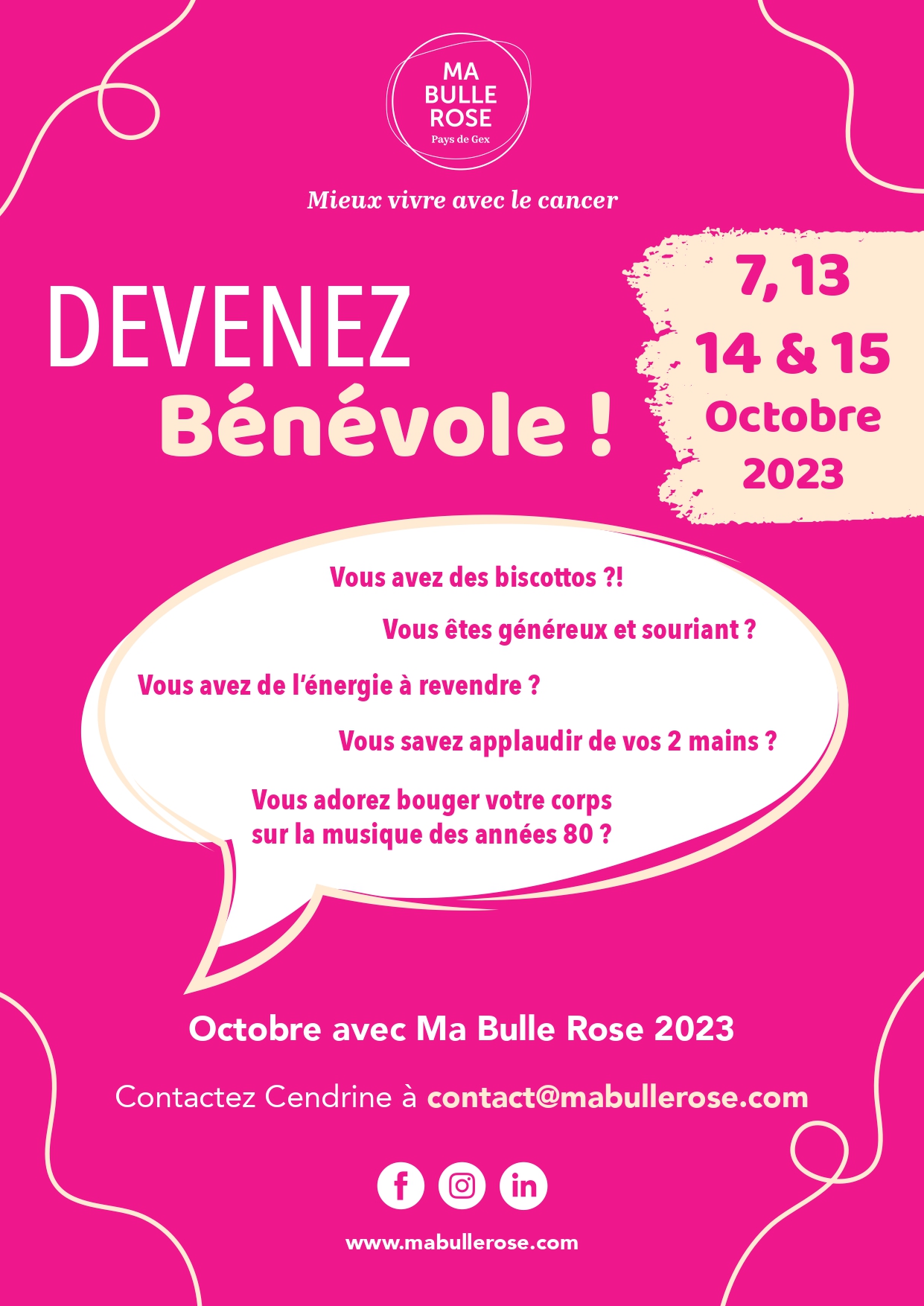 - Fédérer les acteurs du territoire pour créer un réseau solidaire Ma Bulle Rose Pays de Gex.